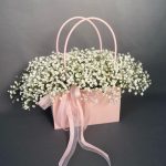 гипсофила белая – 5 шт.Сумочка картонная – 1 шт.Оазис флористический – 1 шт.Лента атласная – 1 шт.