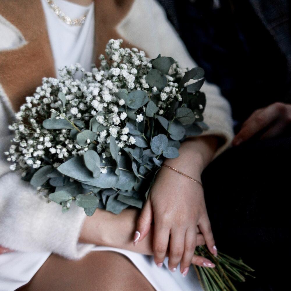 Гипсофила – 7 шт.Эвкалипт – 7 шт.Лента атласная – 1 шт.