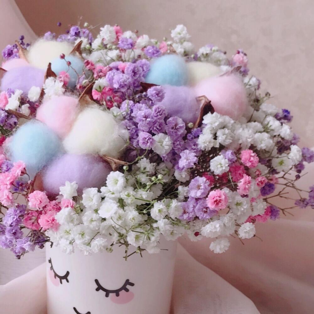 Радужная гипсофила с хлопком в керамическом кашпо