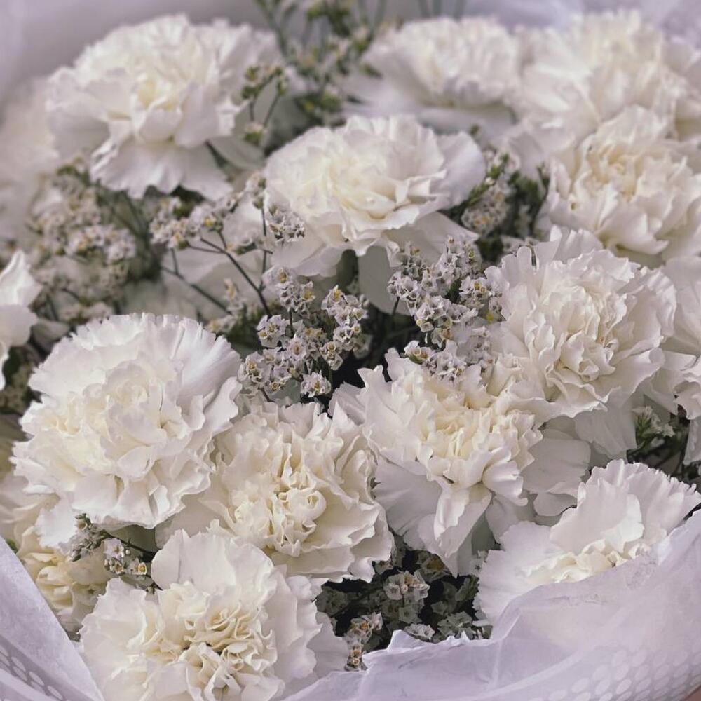 Букет из белых диантусов с лимониумом