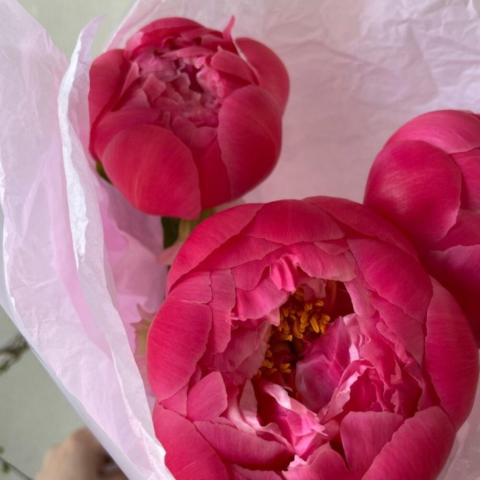 Пион Коралл Шарм (Coral Charm) – 3 шт.Упаковка – 1 шт.Лента атласная – 1 шт.Тишью – 1 шт.