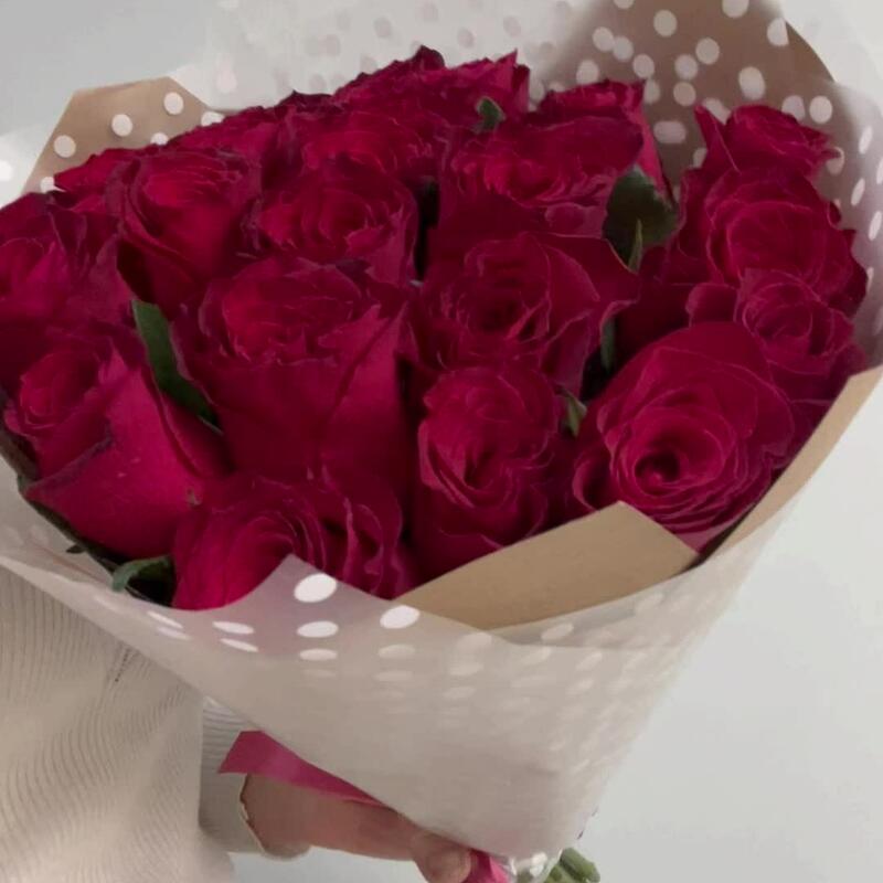 цветы роза – 21 шт.Упаковка крафт – 2 шт.Пленка дизайнерская – 2 шт.