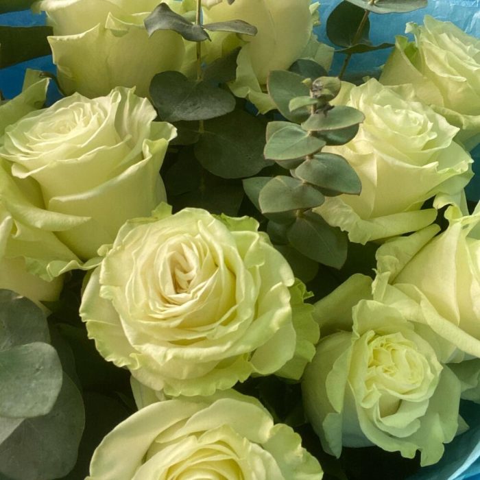 Букет из 11 белых роз и эвкалипта