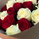 Роза красная 60 см – 11 шт.Крафт упаковка – 1 шт.Роза белая 60 см – 10 шт.