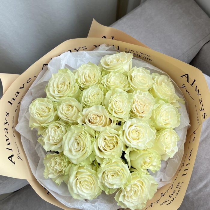 Роза Мондиаль – 23 шт.Тишью белое – 1 шт.пленка матовая дизайнерская – 1 шт.