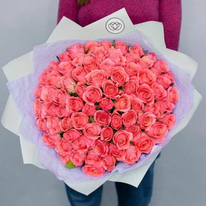 Букет из 75 коралловых роз (Кения) 40 см