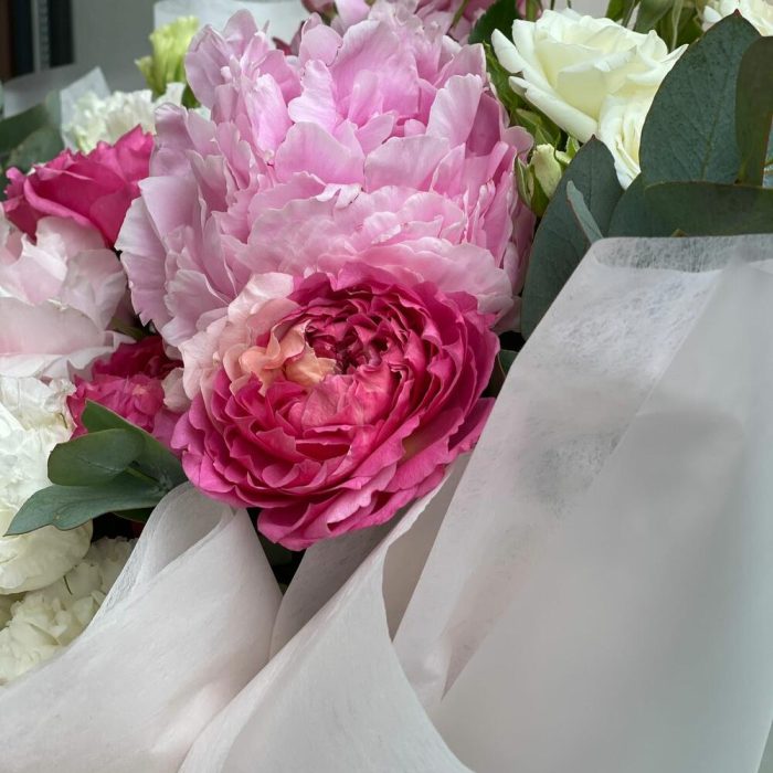 Букет с пионами сорта «Маргарет Джерард»
