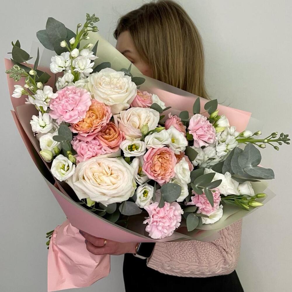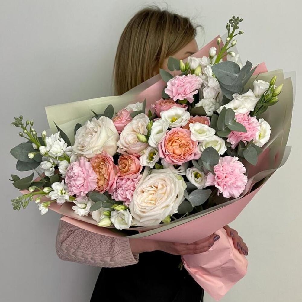 Категорий: Гвоздики, Кустовые розы, Лизиантусы, Пионовидные розы, Розы