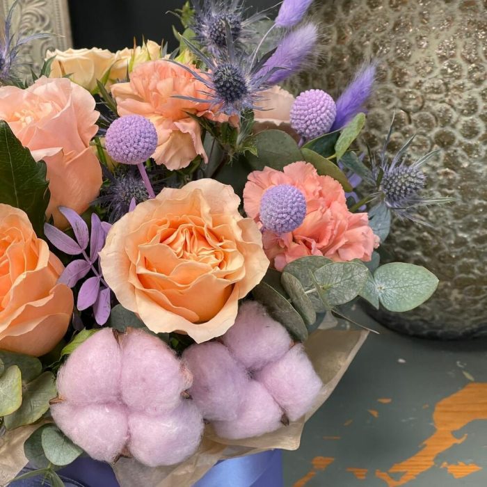 Кустовые розы, Лизиантусы, Розы, Сухоцвет