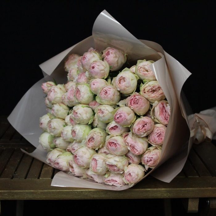 mono bouquet 119 из 25 кустовых пионовидных роз сорта Mansfield park