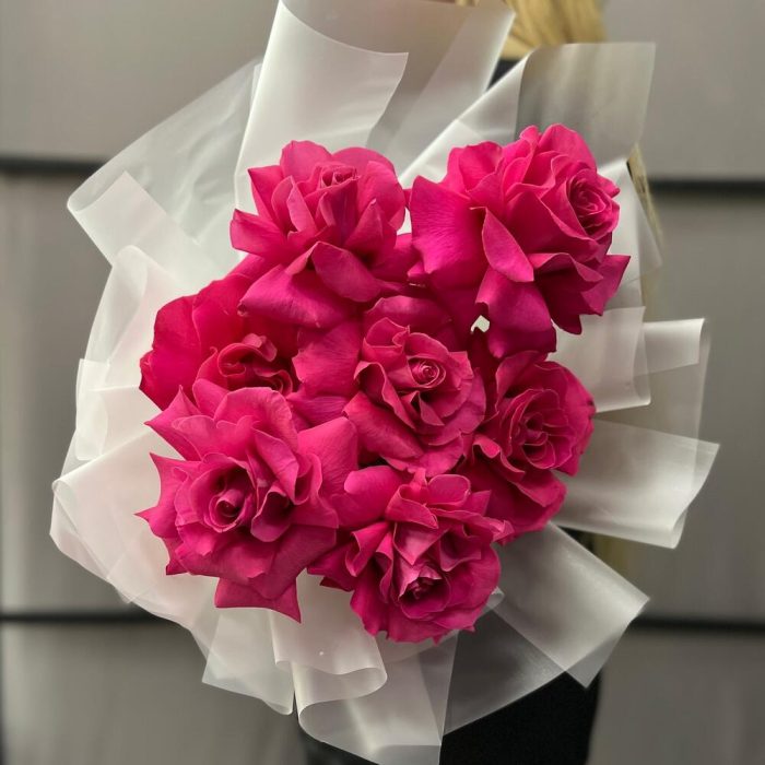 Французская роза – 7 шт.Пленка матовая – 9 шт.Лента атласная – 2 шт.
