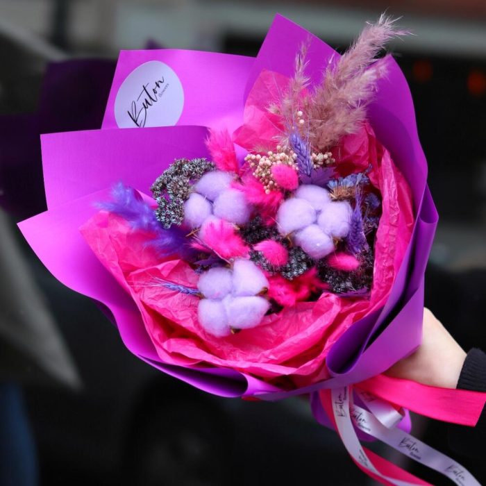 Авторский интерьерный букет из сухоцветов в фиолетовой гамме