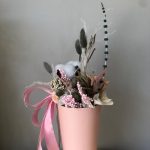 “Сиреневый туман” – композиция из гипсофилы в шляпной коробке